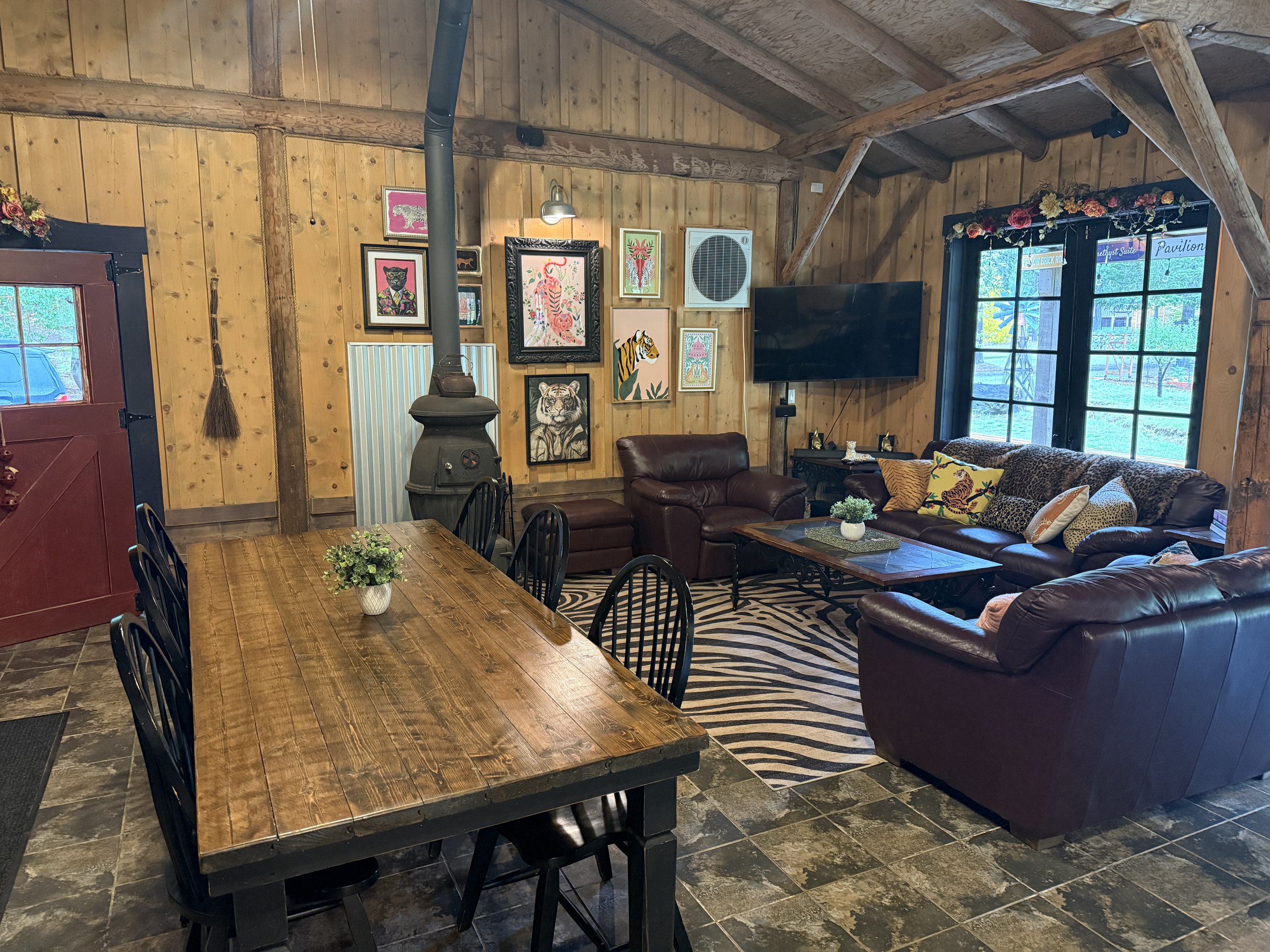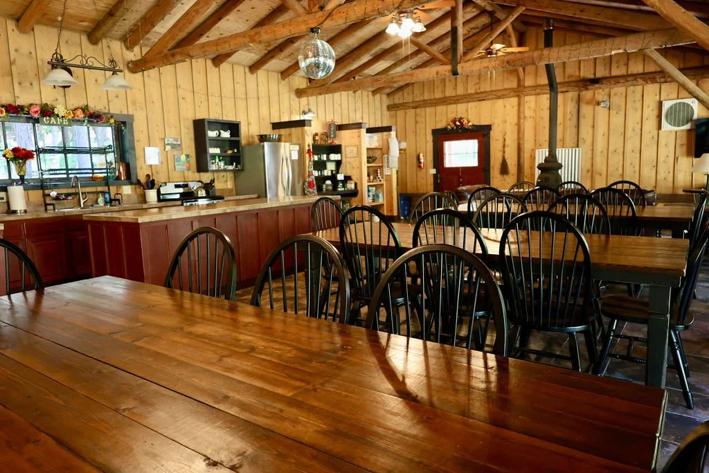 At the heart of our reception space, The Cosmic Café offers a warm and welcoming setting for gatherings both intimate and grand. With comfortable seating for up to 50 guests indoors and on the covered patio, we can accomodate up to 200 guests with additional tables and chairs, extending into the surrounding meadows, beneath the open sky. Whether you're hosting a wedding reception, a lively summer camp, or a cozy gathering by the fire, the Cosmic Café is a space designed for connection, comfort, and celebration.