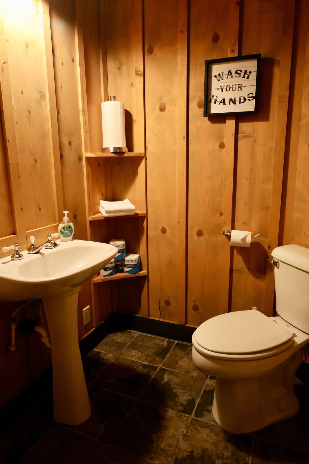 With cozy seating, entertainment options, a full kitchen, and scenic views of the creek, the Cosmic Cafe is the perfect spot to host special events. Here, you can unwind by the fireplace, catch up on your favorite shows, play a game of pool or connect with old friends and new friends—all while enjoying complimentary high speed internet access. The Café is available for rent and can be packaged with other cabins to create your dream events.