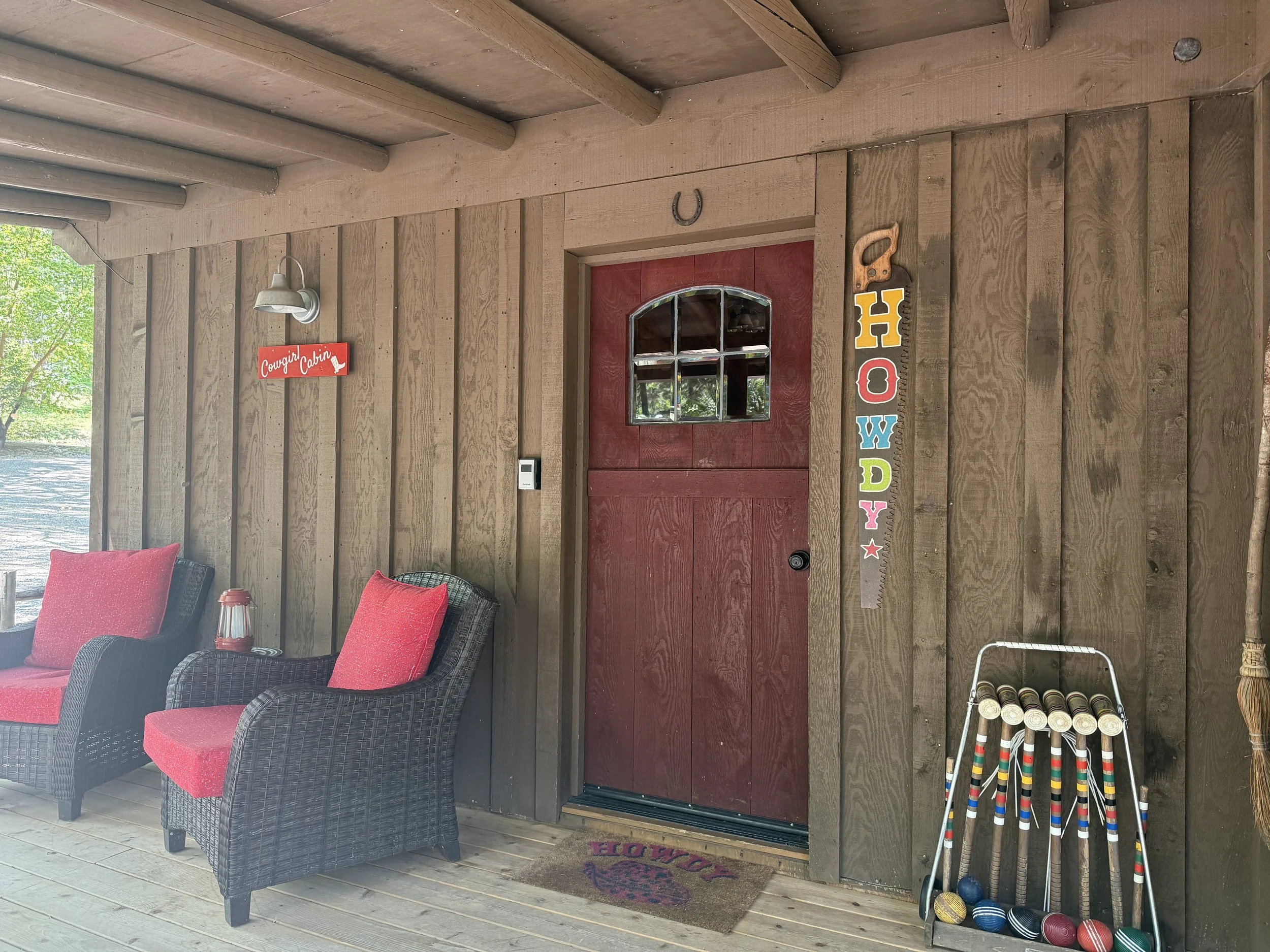 There is an open meadow next to the cabin with horseshoes, tether ball and croquet. The cabin is completely private but is nearby our bunkhouse. There may be guests or other events happening at the time of your visit but our quiet time is 10pm.